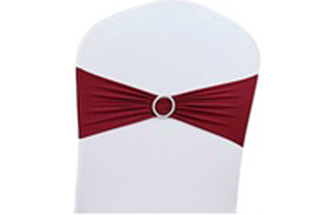 Bandeaux de chaise en lycra couleur bordeaux avec son rond en strass