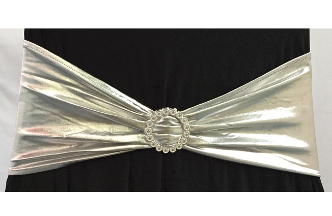 Bandeaux de chaise en lycra couleur argent avec son rond en strass