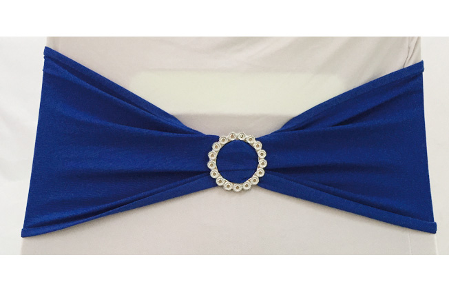 Bandeaux de chaise en lycra couleur bleu roi avec son rond en strass