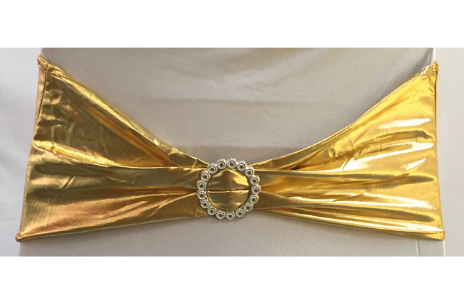 Bandeaux de chaise en lycra couleur or avec son rond en strass