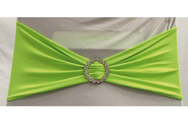 Bandeaux de chaise en lycra couleur vert anis avec son rond en strass