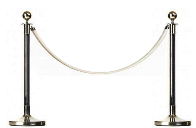 L article ce compose : d une Corde blanche en velours d 1m50 et de deux potelets chromé d 1m |