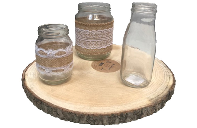 Lot de 3 petit pots en verre de style champêtre , idéal pour vos centres de table .