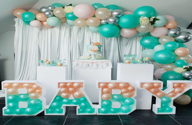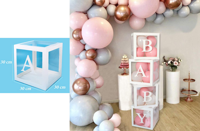 Ideal pour baby shower ou baptême. Dimension d un cube 0.30cm X 0.30cm X 0.30cm. ATTENTION BALLON NON FOURNI |