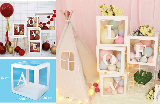 Lot de 4 cubes creux LOVE pour insérer des ballons de la couleur de votre choix.