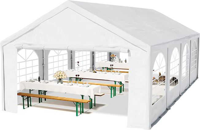 Comprend 1 chapiteaux 6x12 mètres montage et démontage (aide au montage impératif 3 personnes)