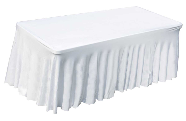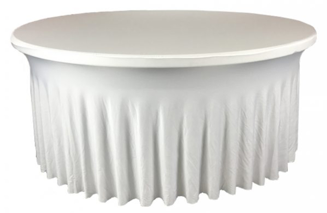 Nappe lycra juponné pour table ronde de diamètre 150 cm .