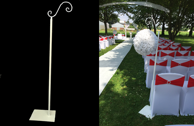 Piquet de cérémonie laïque sur embase a poser directement au sol.En acier blanc et réglable en hauteur de 1,20 mètre a 1,90 mètre .